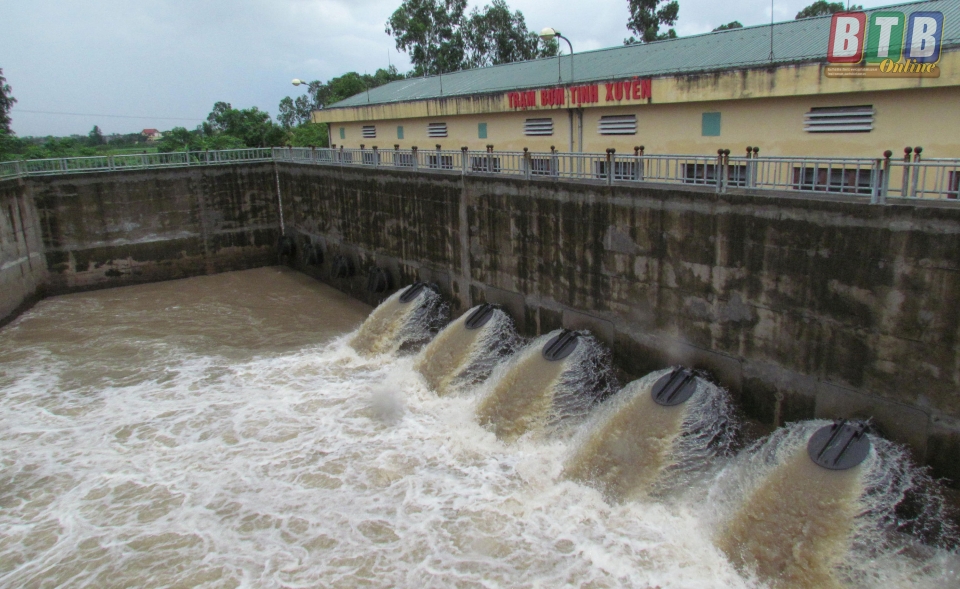 Xí nghiệp Khai thác công trình thủy lợi Hưng Hà đã đóng van các cống dưới đê, mở cửa van các cống tiêu, tiêu triệt để nước đệm trên hệ thống sông trục. Giải phóng dòng chảy bảo đảm tiêu nước nhanh cho các vùng có nguy cơ ngập úng cao.