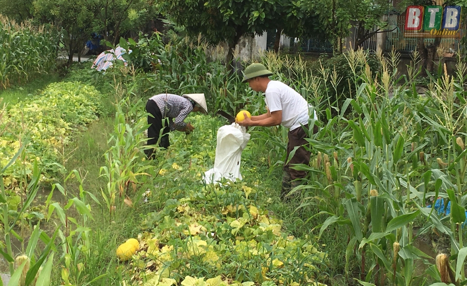Người dân xã Minh Quang thu hoạch dưa trước bão. Ảnh: Hoàng Lanh