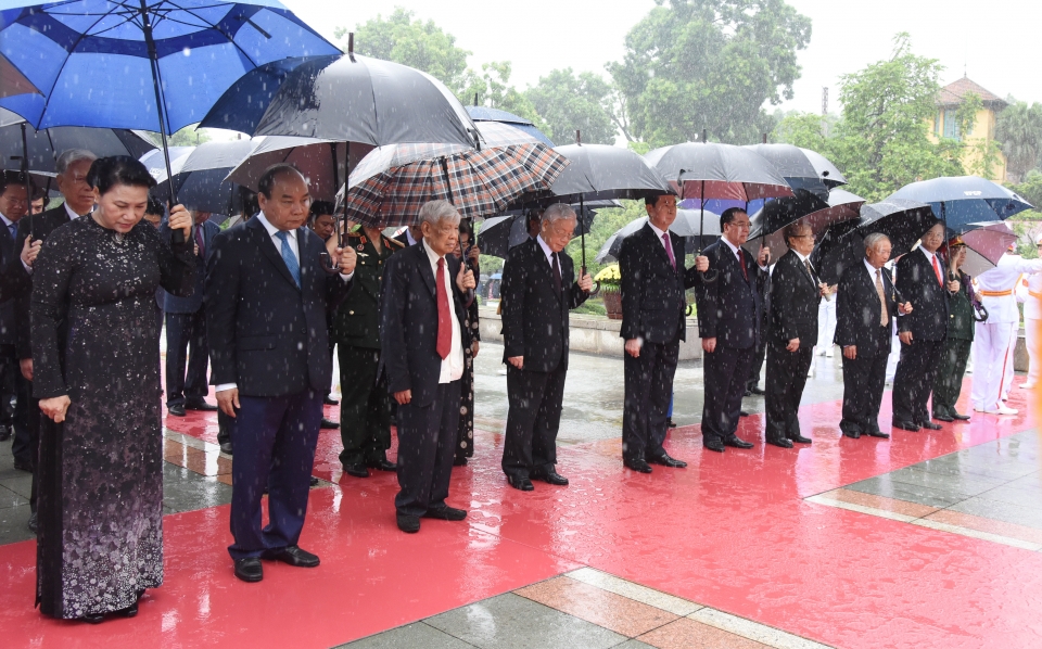 Các đồng chí lãnh đạo Đảng, Nhà nước tưởng nhớ các anh hùng, liệt sĩ.