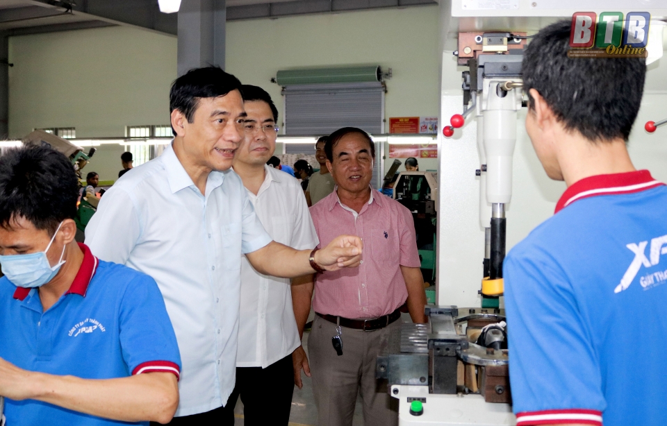 Đoàn đã tới thăm Công ty Cổ phần Sợi Trà Lý (phường Tiền Phong), Công ty TNHH Uli (Khu Công nghiệp Sông Trà) và Công ty TNHH Da Giày Xuất khẩu Thành Phát (xã Vũ Lạc).