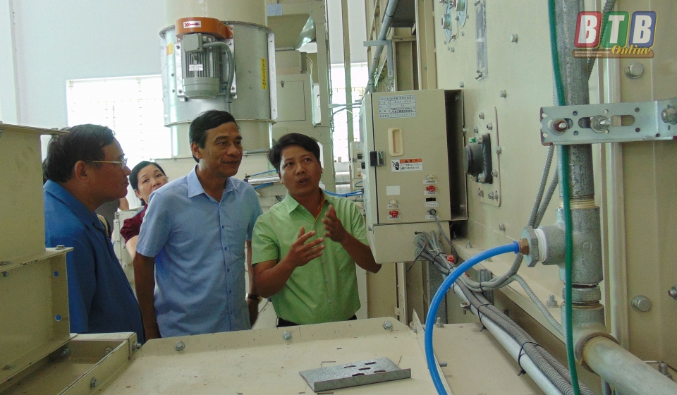 Các đồng chí lãnh đạo tỉnh thăm Nhà máy chế biến hạt giống của Công ty Cổ phần Tập đoàn ThaiBinh Seed).