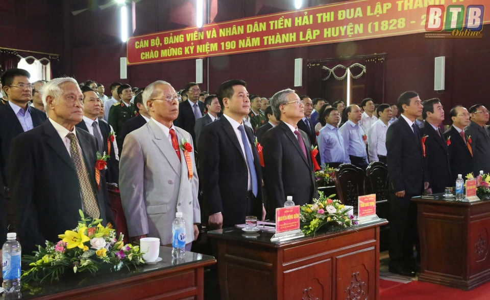 Phát biểu tại lễ kỷ niệm, đồng chí Nguyễn Hồng Diên, Ủy viên Trung ương Đảng, Bí thư Tỉnh ủy, Chủ tịch HĐND tỉnh, Trưởng đoàn Đại biểu Quốc hội tỉnh biểu dương, ghi nhận Đảng bộ, chính quyền và nhân dân huyện Tiền Hải đã nêu cao tinh thần đoàn kết, anh dũng chiến đấu, cần cù, sáng tạo trong lao động sản xuất, đóng góp một phần không nhỏ vào sự phát triển chung của tỉnh. Đồng chí bày tỏ lòng biết ơn sâu sắc đến công lao của các anh hùng liệt sỹ, Bà mẹ Việt Nam anh hùng, các đồng chí lão thành cách mạng, các đồng chí thương binh, bệnh binh, gia đình có công với cách mạng và tầng lớp nhân dân đã không tiếc công sức, máu xương chung tay bảo vệ và xây dựng quê hương Tiền Hải phát triển như ngày hôm nay.
