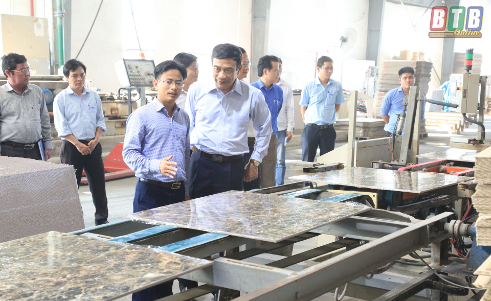 Đồng chí Phó Bí thư Tỉnh ủy, Chủ tịch UBND tỉnh đã đến kiểm tra hoạt động sản xuất tại nhà máy Viglacera Thái Bình thuộc Công ty Cổ phần Viglacera Tiên Sơn và nhà máy gạch men Mikado. Đây là hai nhà máy chuyên sản xuất, kinh doanh gạch ốp lát granite với năng lực sản xuất hàng triệu m2 sản phẩm/năm.