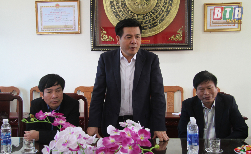 Đồng chí Nguyễn Hồng Diên, Ủy viên Trung ương Đảng, Bí thư Tỉnh ủy, Chủ tịch HĐND tỉnh, Trưởng đoàn đại biểu Quốc hội tỉnh động viên xã Quỳnh Minh (Quỳnh Phụ) quyết tâm bảo đảm ANTT trong dịp Tết Nguyên đán. Ảnh: Trịnh Cường