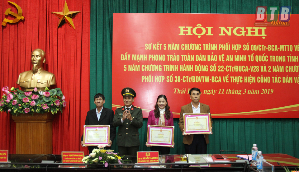 Tại hội nghị, Bộ Công an, Ủy ban MTTQ Việt Nam đã khen thưởng các đơn vị, cá nhân có thành tích xuất sắc trong công tác dân vận và thực hiện phong trào “Toàn dân bảo vệ an ninh Tổ quốc”.
