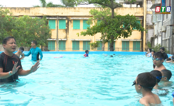 Là huyện ven biển, thực hiện đề án dạy bơi cho học sinh Tiểu học và THCS, các trường học, cơ sở tư nhân huyện Thái Thụy quan tâm đầu tư xây dựng bể bơi, thu hút học sinh tập bơi phòng tai nạn thương tích do đuối nước trong dịp hè.