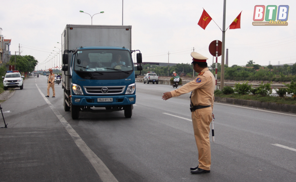 Lực lượng cảnh sát giao thông, Công an tỉnh kiểm tra hoạt động phương tiện kinh doanh vận tải trên quốc lộ 10.