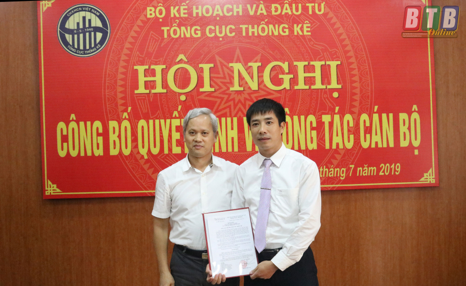 Tại hội nghị, lãnh đạo Vụ Tổ chức cán bộ Tổng cục Thống kê đã công bố quyết định về việc điều động, bổ nhiệm đồng chí Tăng Bá Phúc, Phó Cục trưởng Cục Thống kê Hải Dương giữ chức vụ Cục trưởng Cục Thống kê Thái Bình thay đồng chí Nguyễn Bình được điều động, bổ nhiệm giữ chức Chánh Văn phòng Tổng cục Thống kê từ ngày 1/8/2019.