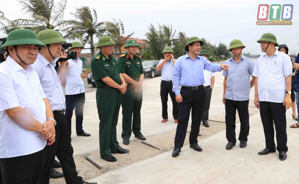 Kiểm tra thực tế tại một số khu neo đậu tàu thuyền, công trình thủy lợi và đê điều trên địa bàn các huyện, đồng chí Bí thư Tỉnh ủy, Chủ tịch HĐND tỉnh hoan nghênh các địa phương đã có sự chủ động trong chỉ đạo, tổ chức các phương án ứng phó với bão số 3. Đồng chí nhận định đây là cơn bão có diễn biến phức tạp, cường độ mạnh nên các địa phương, đơn vị không được lơ là, chủ quan; tích cực tuyên truyền, vận động, kêu gọi chủ các phương tiện tàu thuyền, người lao động trên các chòi nuôi trồng thủy hải sản nhanh chóng vào nơi tránh trú bão an toàn trước 16 giờ ngày 1/8/2019. Bộ đội Biên phòng tỉnh thường xuyên liên lạc với các chủ phương tiện còn hoạt động gần bờ cũng như phương tiện đã vào nơi neo đậu ngoài tỉnh; cử cán bộ xuống địa bàn ký cam kết với các chủ phương tiện thực hiện nghiêm lệnh cấm biển của tỉnh. Các xã, thị trấn tập trung kêu gọi, đôn đốc các lao động tại các chòi canh ngoài đê vào bờ. Địa phương nào để ngư dân, người lao động còn ở ngoài biển sau thời điểm 16 giờ ngày 1/8, người đứng đầu địa phương đó phải chịu trách nhiệm với cấp trên. Các địa phương làm tốt công tác tiêu nước, tiêu úng bảo vệ lúa, hoa màu và các vùng nuôi trồng thủy sản; phối hợp chặt chẽ với các xí nghiệp khai thác công trình thủy lợi phân công cán bộ ứng trực, tổ chức vận hành hệ thống bơm tiêu úng tại các cống, trạm bơm.