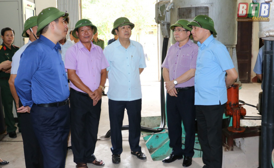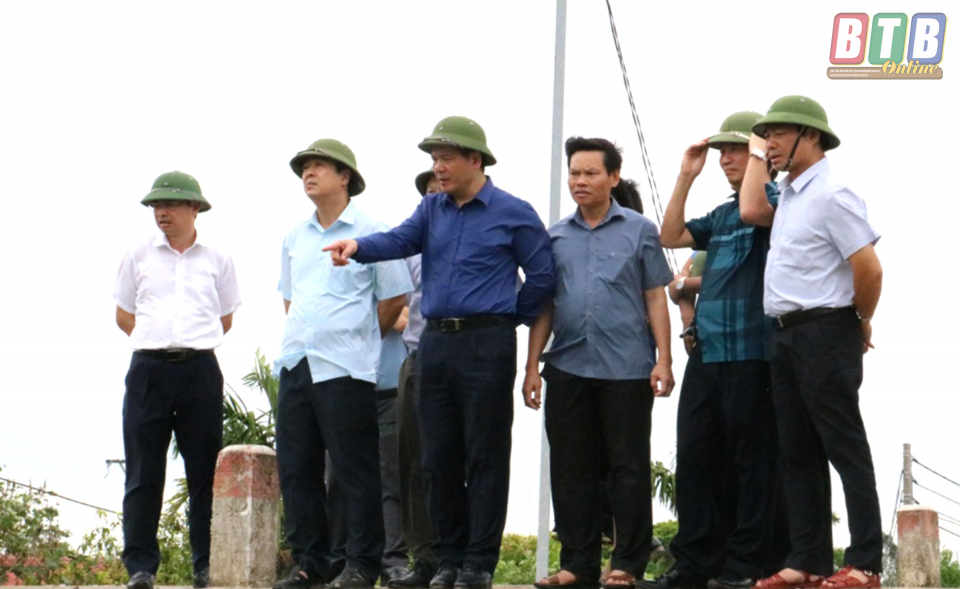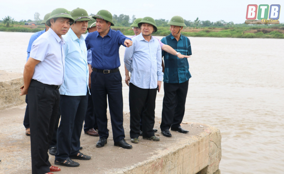 Đồng chí Bí thư Tỉnh ủy, Chủ tịch HĐND tỉnh cùng đoàn đã đến kiểm tra công tác tiêu úng, ứng phó với bão tại vùng sản xuất chuyên canh cây màu xã Quỳnh Hải, công trình kè Đại Nẫm, xã Quỳnh Thọ (Quỳnh Phụ), Trạm bơm Minh Tân, xã Minh Tân (Hưng Hà) và Trạm bơm Cự Lâm, xã Xuân Hòa (Vũ Thư). Tại các nơi đến kiểm tra, đồng chí Bí thư Tỉnh ủy, Chủ tịch HĐND tỉnh đề nghị các địa phương phải kiểm điểm và rút kinh nghiệm nghiêm túc trong chỉ đạo triển khai xây dựng các công trình đê, kè, cống trùng vào thời điểm mùa mưa bão.