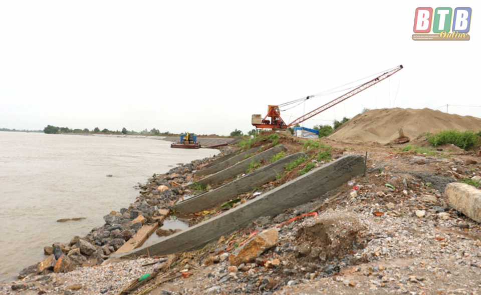Công trình kè Đại Nẫm, xã Quỳnh Thọ (Quỳnh Phụ) đang trong quá trình thi công.