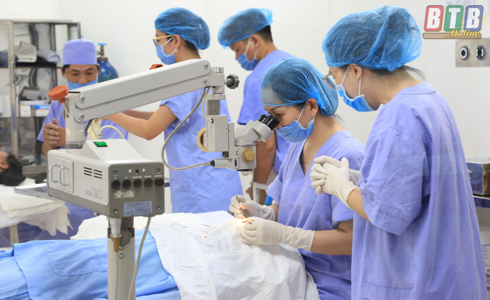 Bác sĩ, kỹ thuật viên Bệnh viện Mắt điều trị cho bệnh nhân.