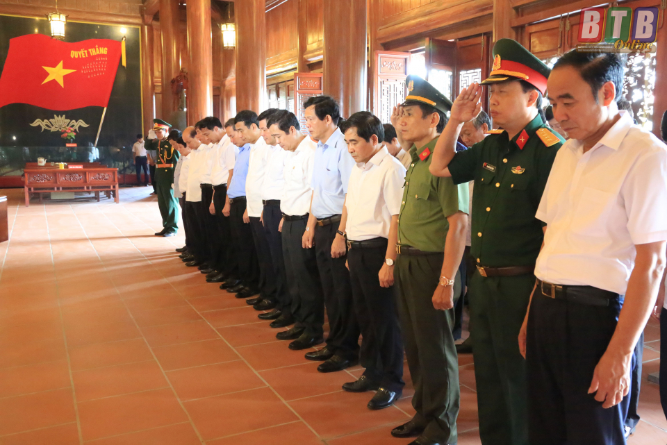 Tại Đền thờ Liệt sĩ tỉnh, các đồng chí lãnh đạo tỉnh và các đại biểu đã đặt vòng hoa, dành một phút mặc niệm, tưởng nhớ những người con ưu tú của quê hương đã anh dũng chiến đấu và hy sinh vì sự nghiệp đấu tranh giải phóng dân tộc, vì nền độc lập, tự do của Tổ quốc, vì hạnh phúc của nhân dân.