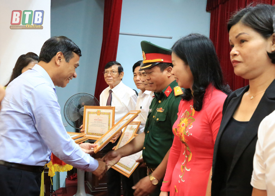 Đồng chí Nguyễn Hồng Diên, Ủy viên Trung ương Đảng, Bí thư Tỉnh ủy, Chủ tịch HĐND tỉnh trao tặng bằng khen cho các tập thể, cá nhân. Ảnh: Thành Tâm
