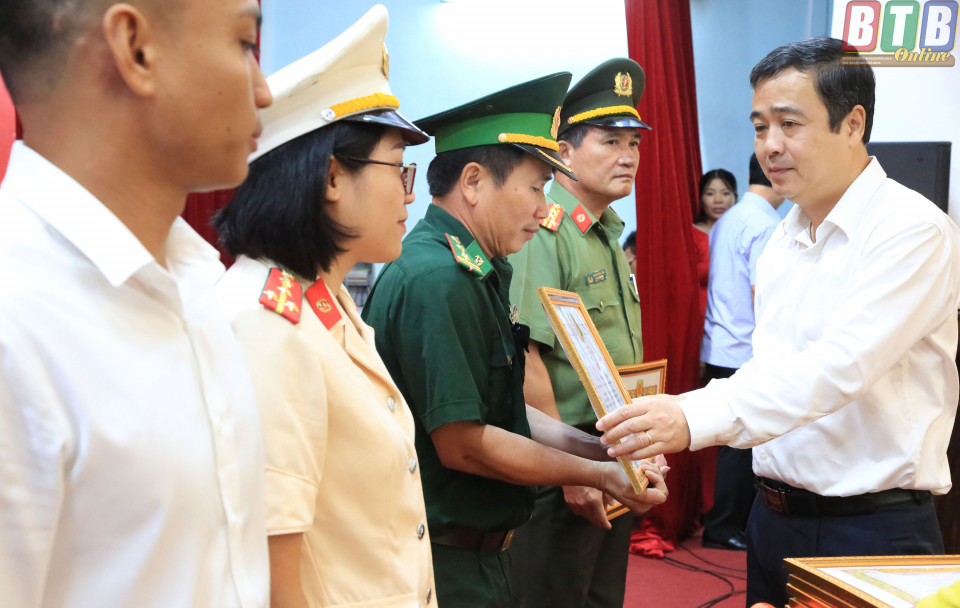 Đồng chí Ngô Đông Hải, Ủy viên dự khuyết Trung ương Đảng, Phó Bí thư thường trực Tỉnh uỷ trao tặng bằng khen cho các cá nhân. Ảnh: Thành Tâm