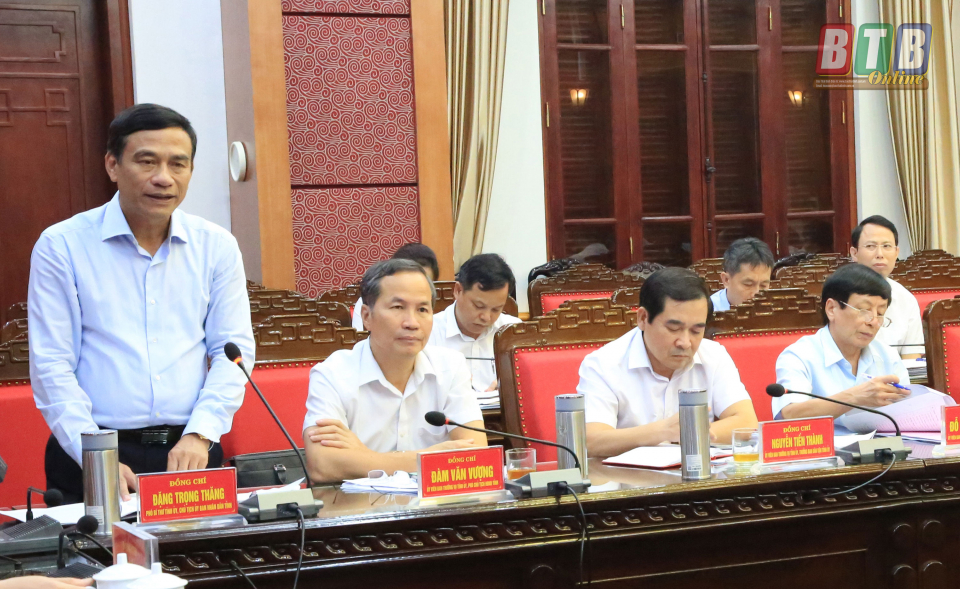 Đồng chí Đặng Trọng Thăng, Phó Bí thư Tỉnh ủy, Chủ tịch UBND tỉnh phát biểu tại buổi làm việc. Ảnh: Thành Tâm