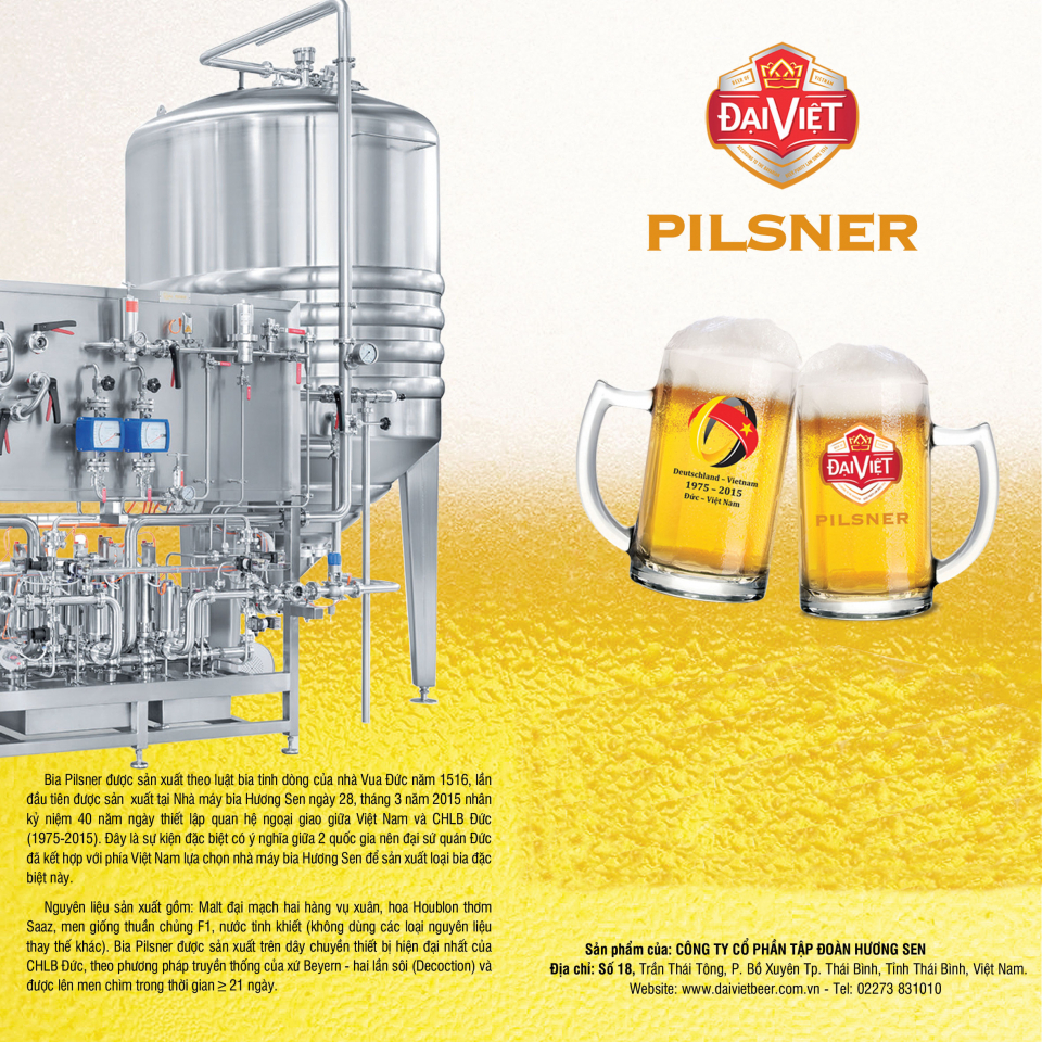 Nhân kỷ niệm 40 năm Đức và Việt Nam thiết lập quan hệ ngoại giao (1975 - 2015), Đại sứ quán Đức tại Việt Nam đã chọn nhà máy bia Đại Việt của Công ty Cổ phần Tập đoàn Hương Sen để sản xuất loại bia đặc biệt mang tên Đại Việt Pilsner. Đầu năm 2015, Tập đoàn Hương Sen đã tung ra thị trường dòng sản phẩm này với thiết kế đặc biệt một bên là logo Đại Việt, một bên là logo kỷ niệm 40 năm quan hệ ngoại giao Đức Việt do Đại sứ quán Đức cung cấp, mang đậm màu sắc văn hóa 2 dân tộc Việt và Đức, được nấu theo Luật Bia tinh dòng lâu đời của người Đức. Pilsner là dòng bia đặc biệt do Josef Grol, một quý tộc người Đức ở xứ Bavaria tạo ra đầu tiên vào năm 1842. Đây cũng là thời điểm Pilsner bắt đầu trở nên nổi tiếng với hương vị đặc biệt, màu vàng óng ánh của bia đã chiếm được cảm tình của người dùng từ Cộng hòa Séc, Đức, Tiệp… Pilsner đã có mặt ở hơn 140 quốc gia và chinh phục cả thế giới. Sản phẩm không chỉ là một loại đồ uống mà còn được gìn giữ như một giá trị văn hóa.