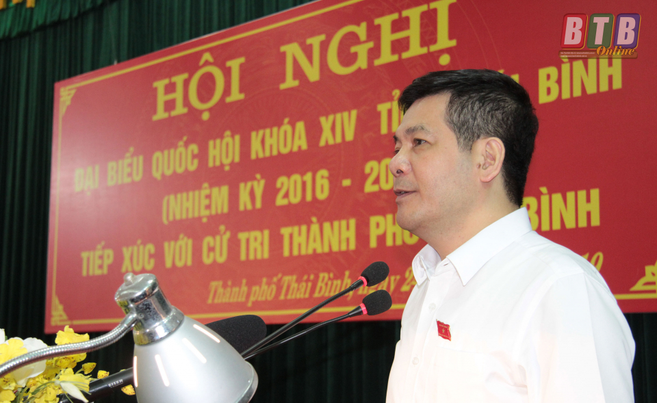 Dự hội nghị tiếp xúc có các đại biểu: Nguyễn Hạnh Phúc, Ủy viên Trung ương Đảng, Ủy viên Ủy ban Thường vụ Quốc hội, Tổng thư ký, Chủ nhiệm Văn phòng Quốc hội; Nguyễn Hồng Diên, Ủy viên Trung ương Đảng, Bí thư Tỉnh ủy, Chủ tịch HĐND tỉnh; Phạm Văn Tuân, Phó Trưởng đoàn phụ trách Đoàn đại biểu Quốc hội tỉnh; Bùi Quốc Phòng, Phó Chủ tịch Hội Cựu chiến binh tỉnh. Đồng chí Đỗ Đình An, Ủy viên Ban Thường vụ Tỉnh ủy, Bí thư Thành ủy, Chủ tịch HĐND thành phố Thái Bình dự hội nghị tiếp xúc cử tri tại thành phố Thái Bình.