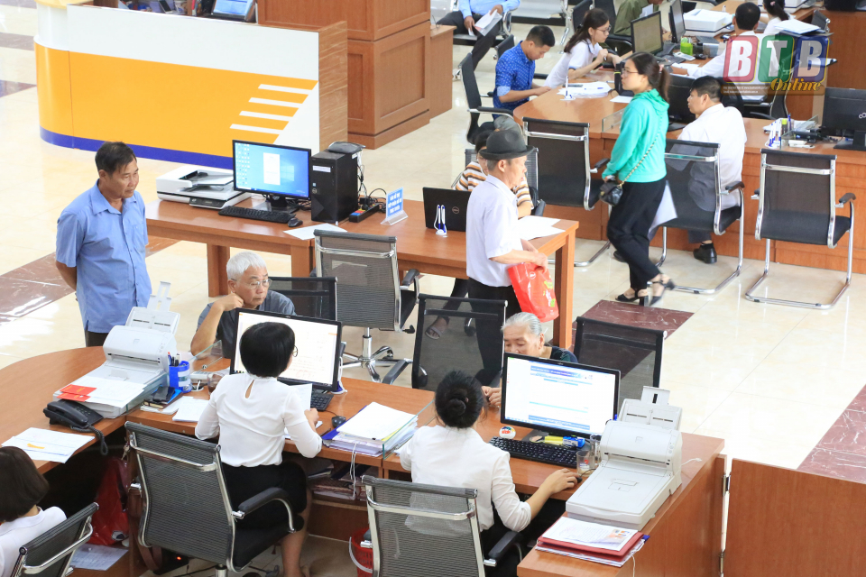 Hoạt động tại Trung tâm phục vụ Hành chính công tỉnh. Ảnh: Thành Tâm