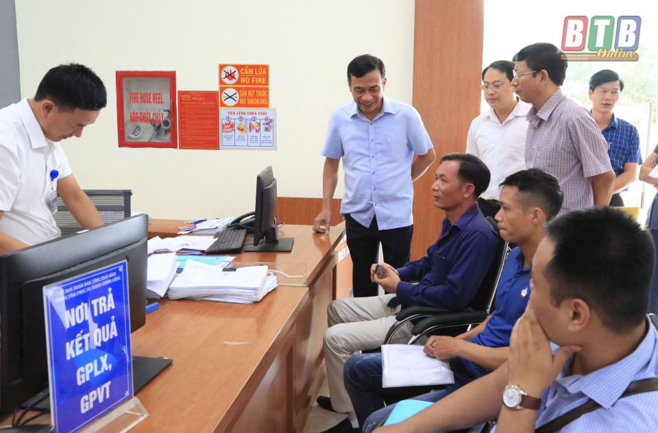 Đồng chí Phó Bí thư Tỉnh ủy, Chủ tịch UBND tỉnh kiểm tra tình hình hoạt động của Trung tâm Phục vụ hành chính công tỉnh