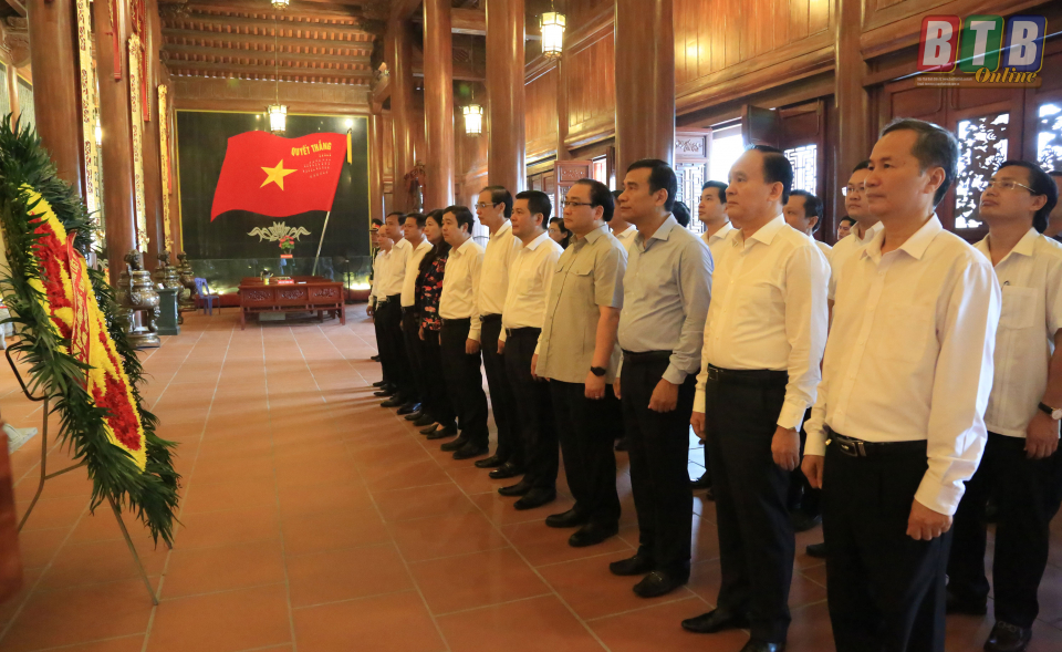 Tại Đền thờ Liệt sĩ tỉnh, các đại biểu đã dâng hương, đặt vòng hoa, dành phút mặc niệm, tưởng nhớ những người con ưu tú của quê hương Thái Bình đã anh dũng chiến đấu và hy sinh vì sự nghiệp đấu tranh giải phóng dân tộc, vì nền độc lập, tự do của Tổ quốc.