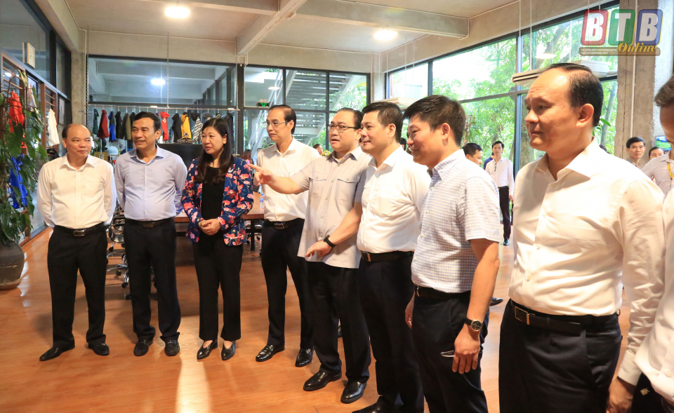 Đoàn công tác của Ban Thường vụ Thành ủy Hà Nội và các đồng chí lãnh đạo tỉnh Thái Bình thăm Công ty Cổ phần sản xuất hàng thể thao MXP tại Khu công nghiệp Nguyễn Đức Cảnh (thành phố Thái Bình)..
