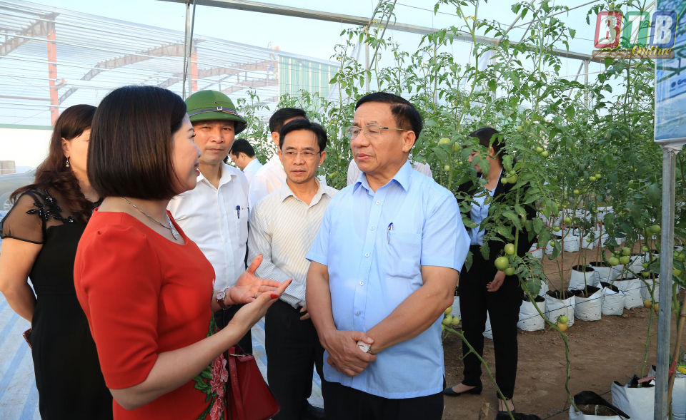 Đoàn đã đến tham quan, khảo sát mô hình tích tụ, tập trung ruộng đất sản xuất rau màu của xã Quỳnh Hải (Quỳnh Phụ); Viện nghiên cứu cây trồng, xã Đông Cường (Đông Hưng) và Nhà máy chế biến hạt giống ở xã Vũ Chính (thành phố Thái Bình) của Công ty Cổ phần Tập đoàn ThaiBinh Seed; mô hình sản xuất cà chua trong nhà lưới theo quy trình VietGap của Công ty Cổ phần Thương mại tổng hợp Toan Vân, xã Vũ Lạc (thành phố Thái Bình). Đây là các mô hình tích tụ, tập trung ruộng đất gắn với phát triển kinh tế tập thể và doanh nghiệp, mô hình sản xuất nông nghiệp công nghệ cao, nông nghiệp thông minh và chế biến giống cây trồng chất lượng tiêu biểu của Thái Bình.