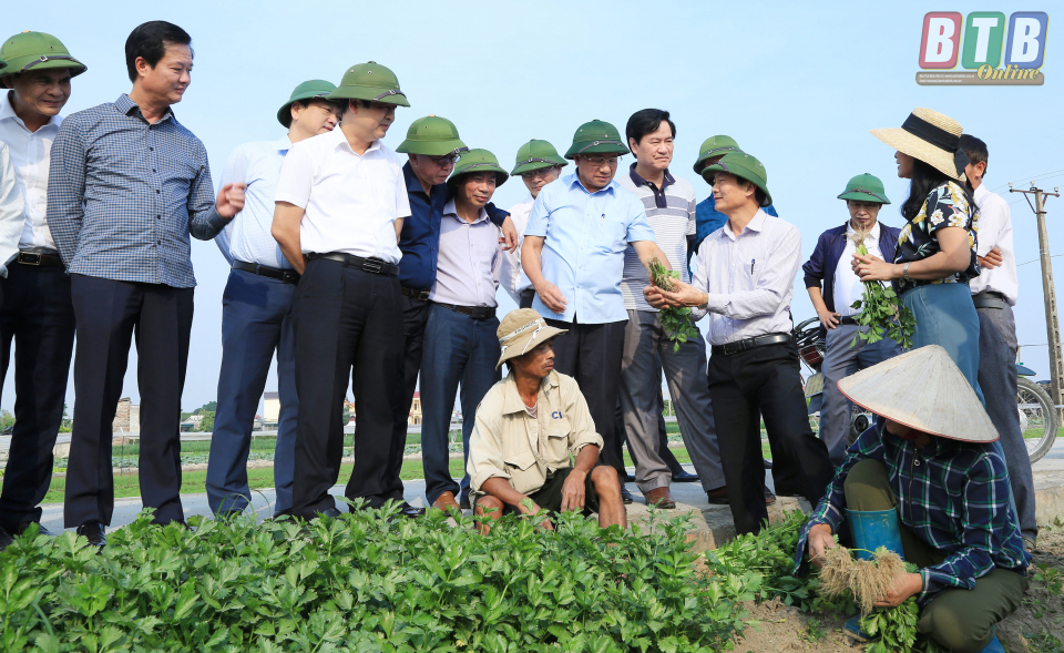 Đoàn công tác của Ban Thường vụ Tỉnh ủy Hà Tĩnh thăm vùng chuyên canh rau màu xã Quỳnh Hải (huyện Quỳnh Phụ).
