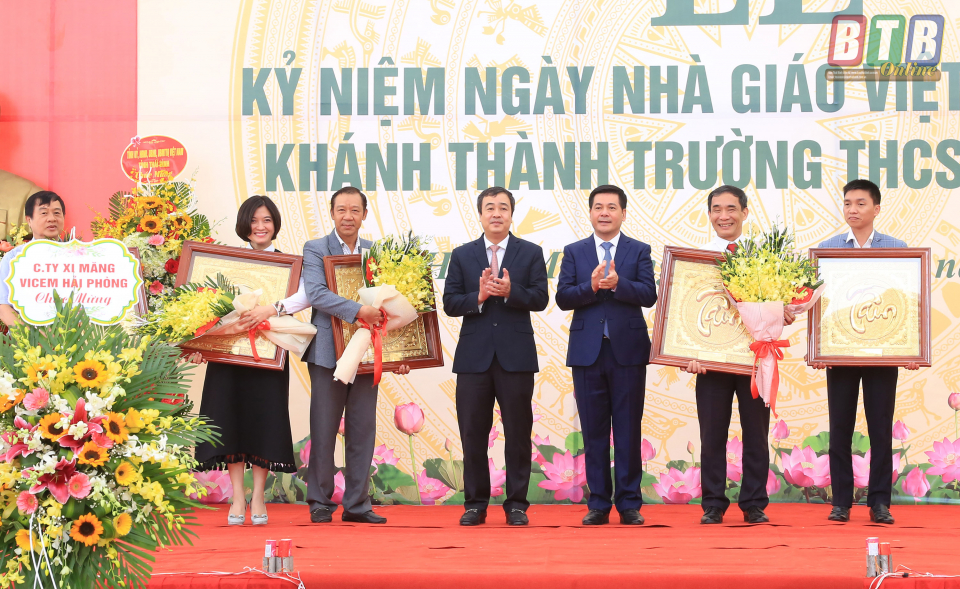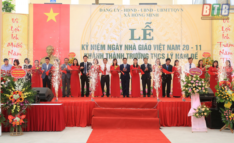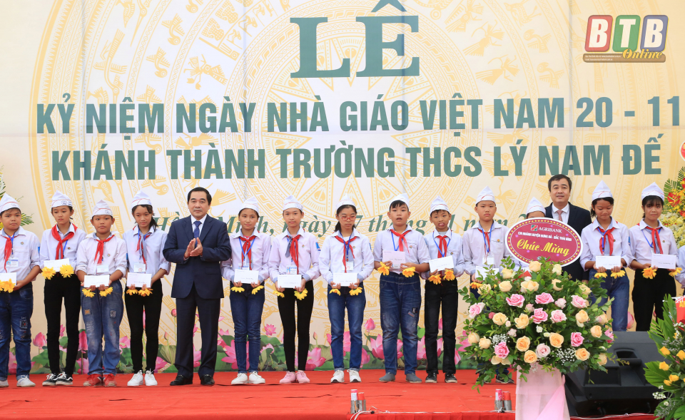 Dự lễ khánh thành và lễ kỷ niệm ngày Nhà giáo Việt Nam với cán bộ, giáo viên, học sinh nhà trường, đồng chí Nguyễn Hồng Diên, Ủy viên Trung ương Đảng, Bí thư Tỉnh ủy, Chủ tịch HĐND tỉnh cùng các đồng chí trong đoàn đã trao tặng 50 suất quà cho các em học sinh nghèo vượt khó của Trường THCS Lý Nam Đế và trồng cây lưu niệm tại trường.