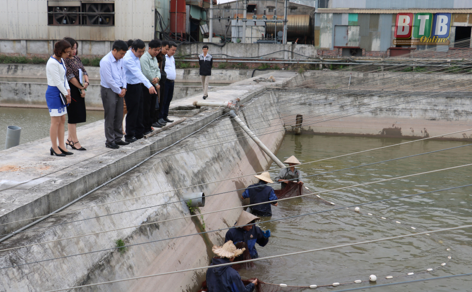 Đồng chí Ngô Đông Hải, Ủy viên dự khuyết Trung ương Đảng, Phó Bí thư thường trực Tỉnh ủy tham quan mô hình nghiên cứu, ứng dụng tiến bộ kỹ thuật sản xuất giống cá trắm đen tại Trung tâm Khuyến nông Thái Bình.