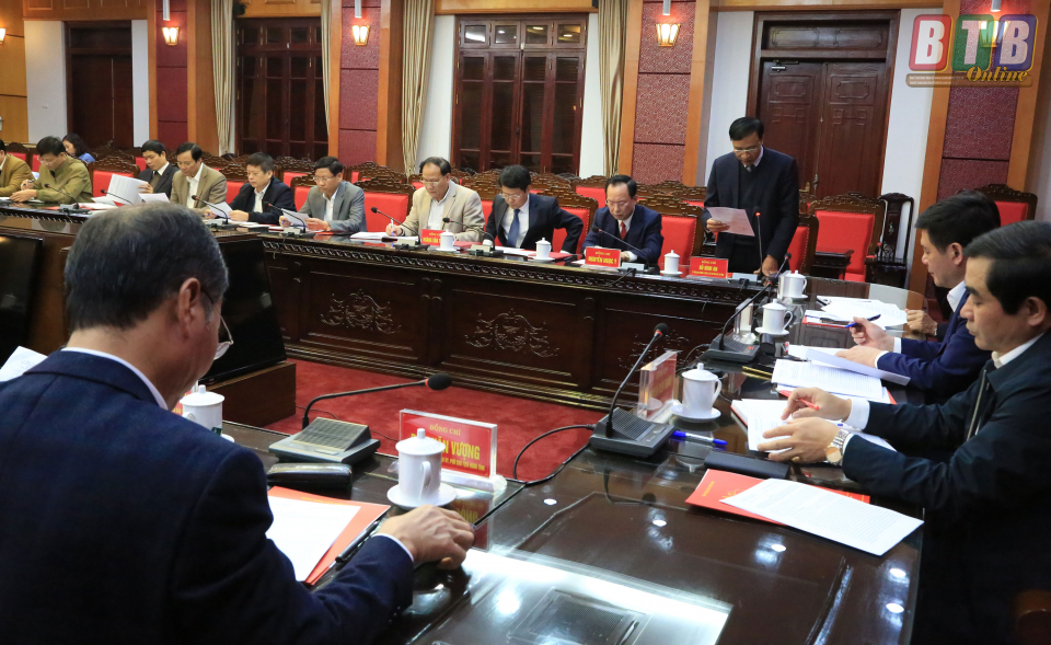 Đồng chí Nguyễn Hồng Diên, Ủy viên Trung ương Đảng, Bí thư Tỉnh ủy, Chủ tịch HĐND tỉnh chủ trì buổi làm việc. Các đồng chí: Đặng Trọng Thăng, Phó Bí thư Tỉnh ủy, Chủ tịch UBND tỉnh; Nguyễn Tiến Thành, Phó Bí thư Tỉnh ủy dự buổi làm việc.
