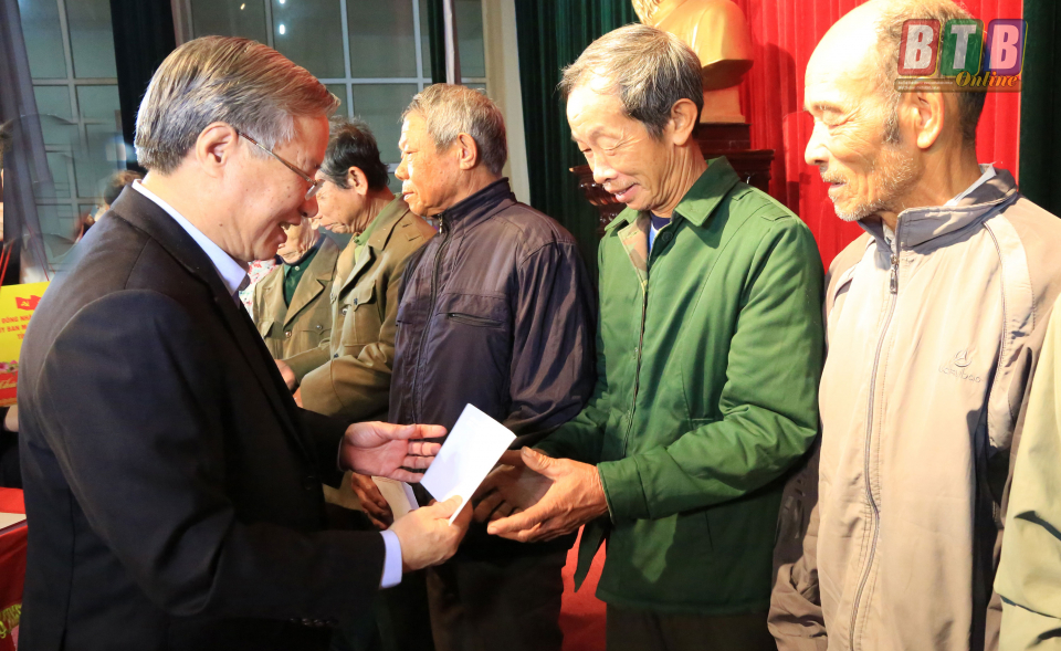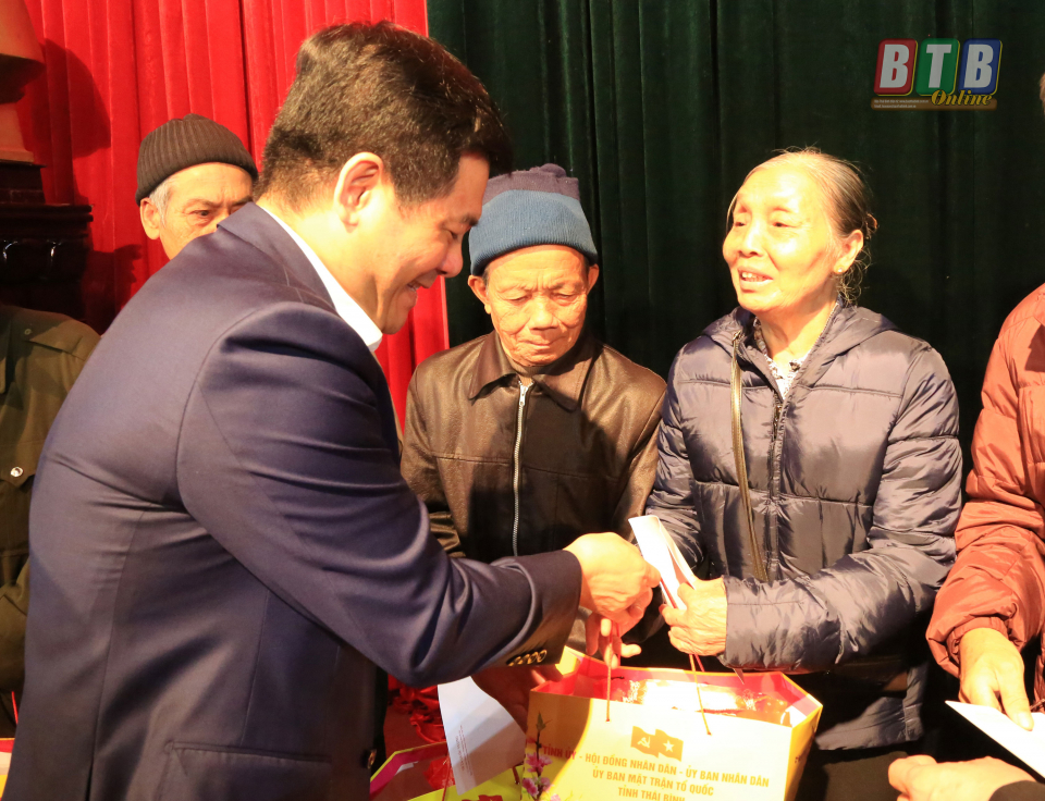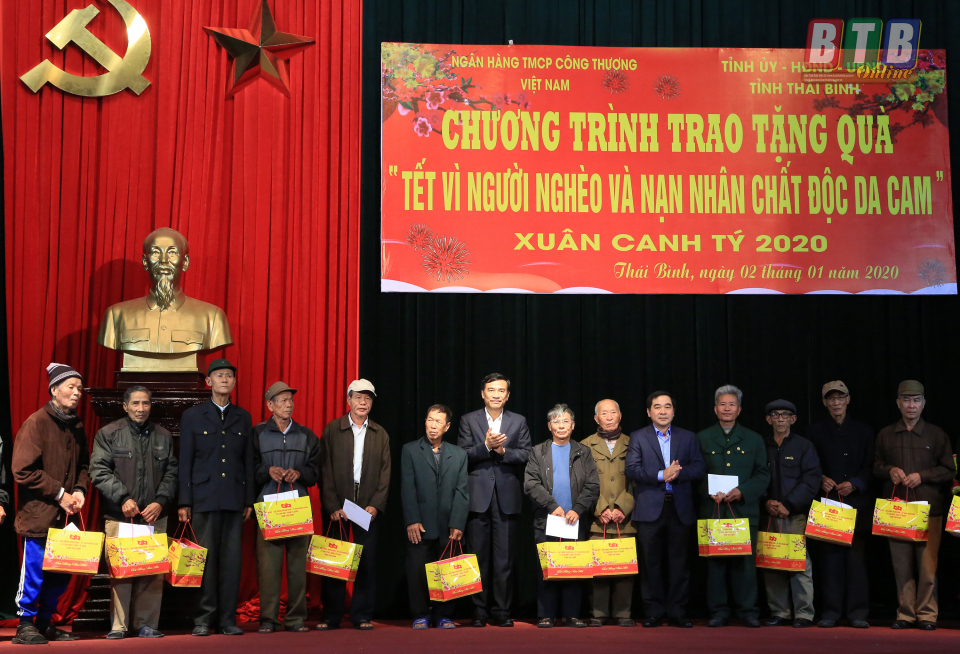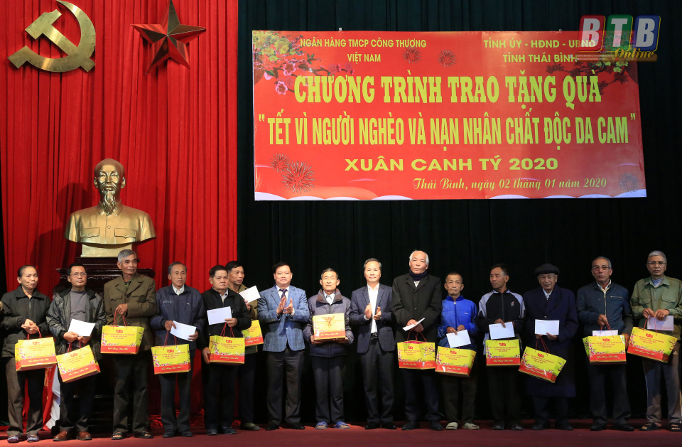 Tại buổi trao quà, đồng chí Trần Quốc Vượng, Ủy viên Bộ Chính trị, Thường trực Ban Bí thư cùng các đồng chí lãnh đạo Tỉnh ủy, HĐND, UBND tỉnh đã thăm hỏi sức khỏe, động viên và trao 150 suất quà, mỗi suất 1 triệu đồng và phần quà cho người hoạt động kháng chiến và con đẻ của họ bị nhiễm chất độc hóa học thuộc các huyện Tiền Hải, Thái Thụy, Kiến Xương; trao tặng 200 triệu đồng cho trẻ em có hoàn cảnh khó khăn trên địa bàn tỉnh từ nguồn kinh phí của Quỹ Bảo trợ trẻ em Việt Nam.