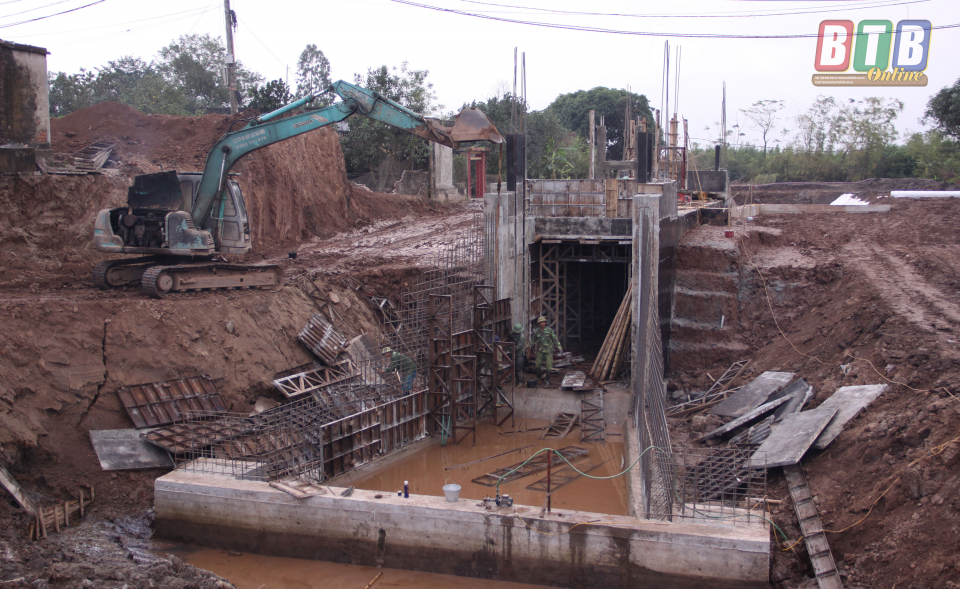 Công trình cống Thụy Bích đang trong quá trình triển khai xây dựng.