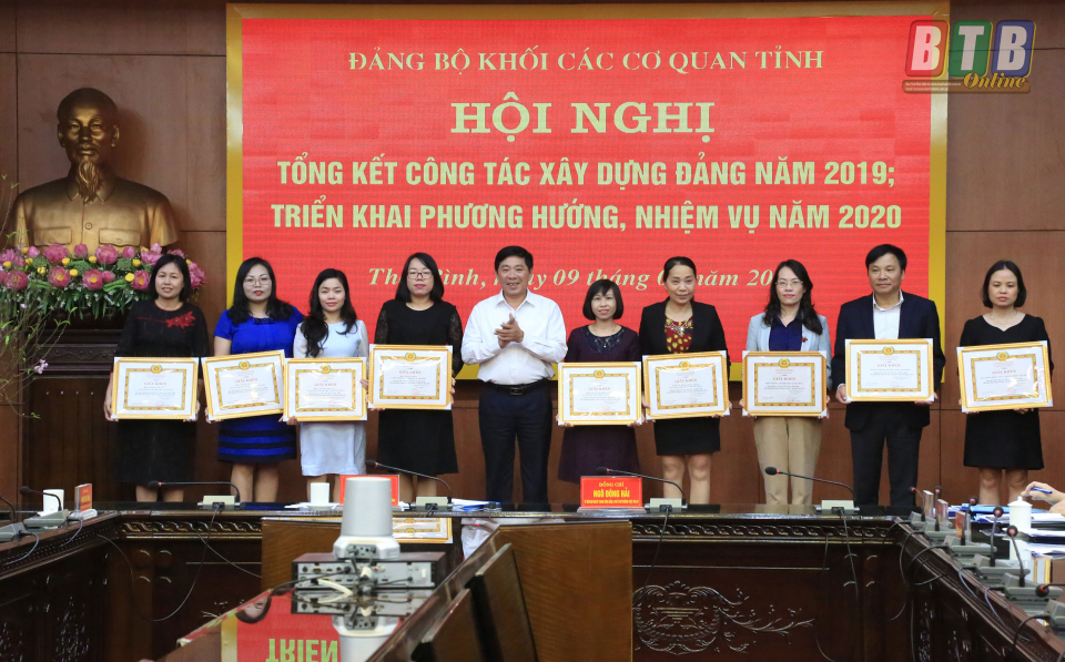 Tại hội nghị, Ban Thường vụ Đảng ủy Khối các cơ quan tỉnh khen thưởng 26 tổ chức cơ sở đảng đạt trong sạch vững mạnh tiêu biểu năm 2019; khen thưởng các tập thể, cá nhân có thành tích xuất sắc trong cuộc thi “Bác Hồ với Thái Bình, Thái Bình thực hiện Di chúc của Bác”.
