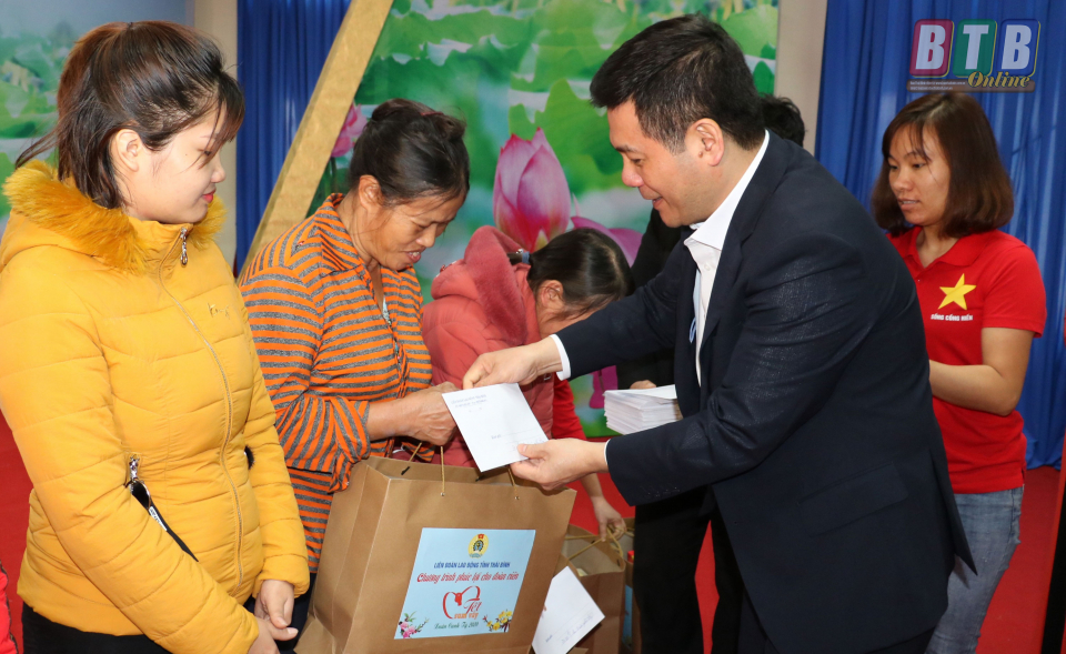 Trong khuôn khổ chương trình, đồng chí Bí thư Tỉnh ủy, Chủ tịch HĐND tỉnh cùng các đồng chí trong đoàn đã trao 150 suất quà cho công nhân, người lao động đang làm việc tại các doanh nghiệp trên địa bàn huyện Hưng Hà, mỗi suất quà trị giá 500 nghìn đồng.