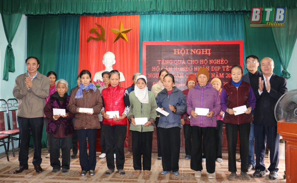 Nhân dịp này, đồng chí Bí thư Tỉnh ủy, Chủ tịch HĐND tỉnh cùng các đồng chí lãnh đạo tỉnh, huyện và đại diện một số doanh nghiệp đã trao tặng hơn 190 suất quà cho các hộ nghèo, hộ cận nghèo của hai xã Thái Phương và Đông Hợp, trị giá mỗi suất quà 500 nghìn đồng.