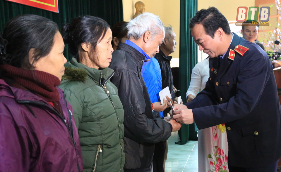 Đồng chí Lại Hợp Mạnh, Tỉnh ủy viên, Viện trưởng Viện kiểm sát nhân tỉnh trao quà, chúc tết các gia đình chính sách xã Vũ Lạc thành phố Thái Bình. Ảnh: Thành Tâm