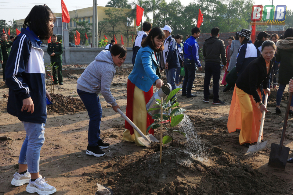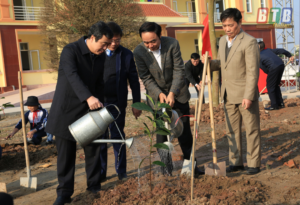 Ngay sau lễ phát động, các đồng chí lãnh đạo tỉnh và huyện Đông Hưng đã tham gia trồng cây xanh tại khuôn viên trụ sở UBND và các trục đường chính trên địa bàn xã Đông Giang.