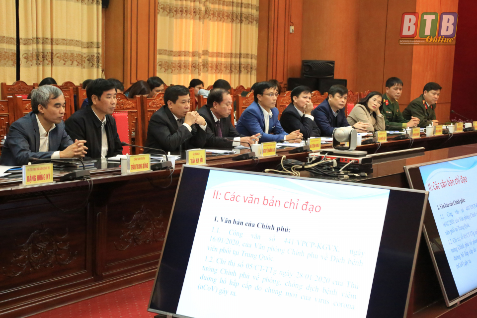 Phát biểu tại cuộc họp, đồng chí Đặng Trọng Thăng, Phó Bí thư Tỉnh ủy, Chủ tịch UBND tỉnh nhấn mạnh, đây là dịch bệnh nguy hiểm. Dù dịch chưa diễn ra ở Thái Bình nhưng cần chủ động phòng chống dịch: nắm chắc tình hình lây lan của dịch và các yếu tố nguy cơ, số lượng khách đi và đến từ vùng dịch, số khách ở Trung Quốc về Việt Nam, đến Thái Bình; phát hiện sớm, kịp thời khi có tình huống dịch xảy ra và phải có phương án khoanh vùng khi có dịch. Cấp tỉnh, huyện, các bệnh viện phải có đội phản ứng nhanh khi có tình huống dịch xảy ra. Bên cạnh đó cần làm tốt công tác truyền thông để người dân thấy được mức độ nguy hiểm của dịch, chủ động phòng tránh. Ngành Y tế, các đơn vị liên quan có biện pháp chủ động phòng chống khi có dịch xảy ra, không chủ quan, lơ là. Ngành Công an phối hợp với ngành Y tế trong tỉnh nắm rõ số lượng người Trung Quốc trở về Thái Bình sau Tết, nắm được tình hình sức khỏe, có biện pháp cách ly. Các huyện, thành phố thành lập ban chỉ đạo phòng, chống dịch tăng cường kiểm tra giám sát ở các địa phương, đơn vị. Bộ Chỉ huy Bộ đội Biên phòng tỉnh thực hiện tốt công tác quản lý xuất nhập cảnh. Các bệnh viện tuyến tỉnh phải có phương án cụ thể khi có dịch xảy ra. Ngành Y tế phải có phương án thiết lập bệnh viện dã chiến, chủ động thu dung ca bệnh. Bệnh viện tuyến huyện phải chủ động xây dựng kế hoạch phù hợp với tình hình địa phương. Các bệnh viện thiết lập đội phản ứng nhanh, xây dựng phương án khi có dịch; có phương án thuốc, vật tư, y tế như: máy đo thân nhiệt; khẩu trang; hóa chất khử trùng tiêu độc; thuốc; máy thở; máy X quang tại chỗ. Các sở, ngành, đơn vị liên quan có trách nhiệm phối hợp Sở Y tế trong phòng chống dịch; nắm bắt tình hình biến động lao động, đặc biệt nắm bắt các đối tượng nguy cơ cao có thể nhiễm bệnh để chủ động các tình huống xử lý, phòng chống dịch.