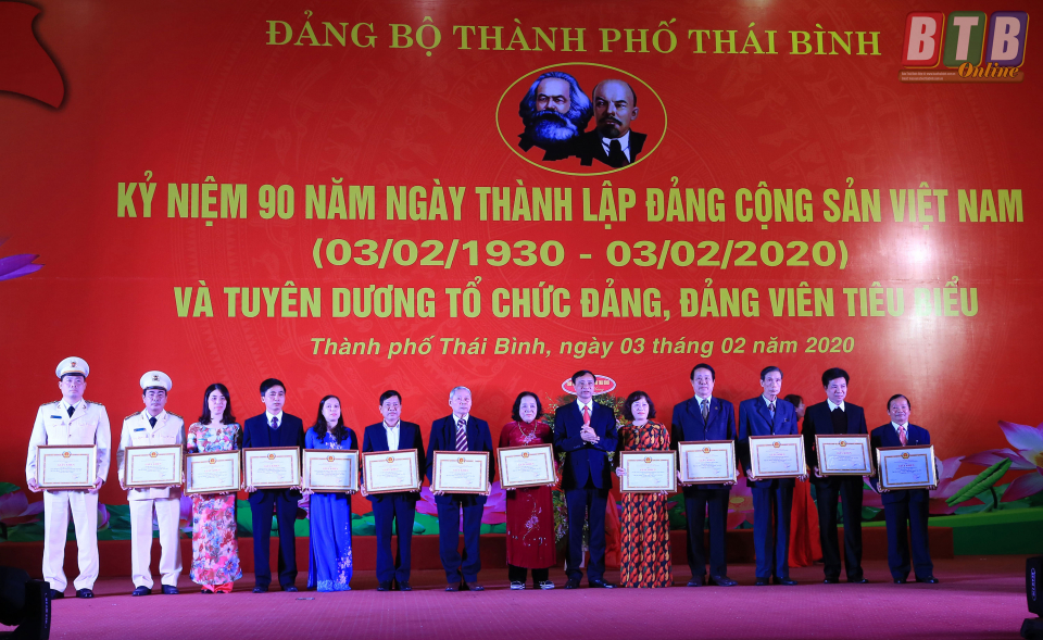 Nhân dịp này, Thành ủy Thái Bình đã tặng giấy khen cho 13 chi bộ, 19 đảng viên tiêu biểu hoàn thành xuất sắc nhiệm vụ 5 năm liền 2015 – 2019 đại diện cho 41 tổ chức cơ sở đảng với hơn 12.000 đảng viên trong toàn Đảng bộ thành phố; trao thưởng cho 9 tập thể, 13 cá nhân đạt giải trong cuộc thi “Bác Hồ với Thái Bình – Thái Bình thực hiện Di chúc của Bác”.