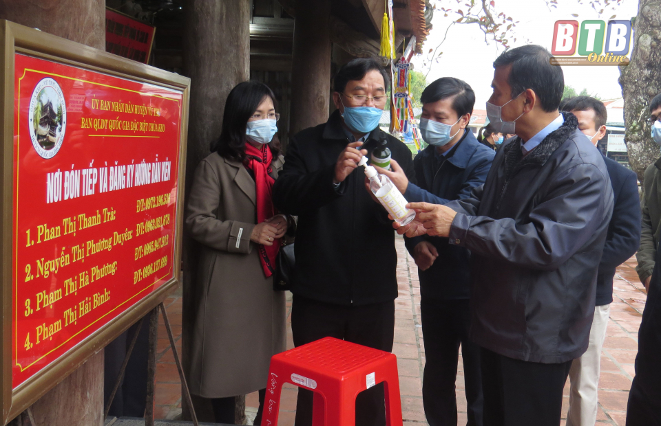 Trong quá trình kiểm tra tại chùa Keo, đồng chí Phó Bí thư Tỉnh uỷ, Chủ tịch UBND tỉnh cùng đoàn đã phát hiện 2 lọ nước sát khuẩn tay không đảm bảo chất lượng và yêu cầu Ban quản lý di tích chùa Keo không tiếp tục sử dụng. Đồng chí yêu cầu cơ quan chức năng cần xử lý nghiêm các đối tượng sản xuất, phân phối những sản phẩm này, không để những sản phẩm kém chất lượng trôi nổi trên thị trường làm ảnh hưởng đến công tác phòng chống dịch bệnh viêm đường hô hấp cấp do nCoV gây ra cũng như sức khỏe của người dân.
