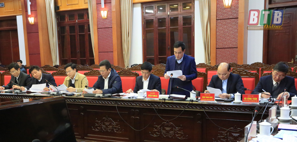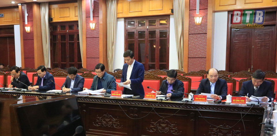 Đồng chí Nguyễn Hồng Diên, Ủy viên Trung ương Đảng, Bí thư Tỉnh ủy, Chủ tịch HĐND tỉnh chủ trì buổi làm việc. Các đồng chí: Đặng Trọng Thăng, Phó Bí thư Tỉnh ủy, Chủ tịch UBND tỉnh; Ngô Đông Hải, Ủy viên dự khuyết Trung ương Đảng, Phó Bí thư thường trực Tỉnh ủy; Nguyễn Tiến Thành, Phó Bí thư Tỉnh ủy cùng dự.