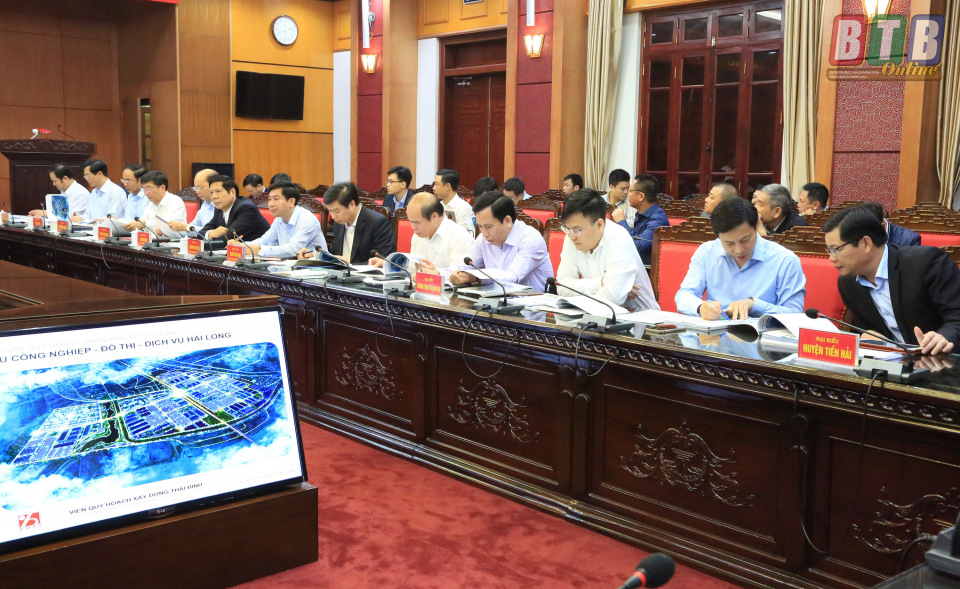 Đồng chí Bí thư Tỉnh uỷ, Chủ tịch HĐND tỉnh yêu cầu quy hoạch phân khu tỷ lệ 1/2.000 Khu công nghiệp - đô thị - dịch vụ Hải Long phải tuân thủ 5 nguyên tắc cơ bản đó là: tuân thủ quy hoạch chung xây dựng Khu kinh tế Thái Bình đã được Thủ tướng Chính phủ phê duyệt; đồng thời xác định lấy tuyến đường bộ ven biển làm trục giao thông đối ngoại huyết mạch quan trọng cho cả Khu kinh tế Thái Bình, Thái Bình với các tỉnh khu vực duyên hải Bắc Bộ. Trong quy hoạch không được tạo mâu thuẫn, gò bó với các phân khu và đặc biệt phải khai thác triệt để các lợi thế về tự nhiên, xã hội ở khu vực này đã xác định tính chất từng phân khu trong khu công nghiệp, đô thị. Vừa phải khai thác được hạ tầng hiện có nhưng vừa phải tư duy phát triển hạ tầng trong tương lai để khai thác, sử dụng triệt để quỹ đất nghiên cứu lập quy hoạch. Quy hoạch công nghiệp hay dịch vụ đều phải tuân thủ nguyên tắc ưu tiên những ngành công nghiệp theo Kết luận của Ban Chấp hành Đảng bộ tỉnh đó là những ngành ít gây ô nhiễm môi trường, nhất là môi trường nước.