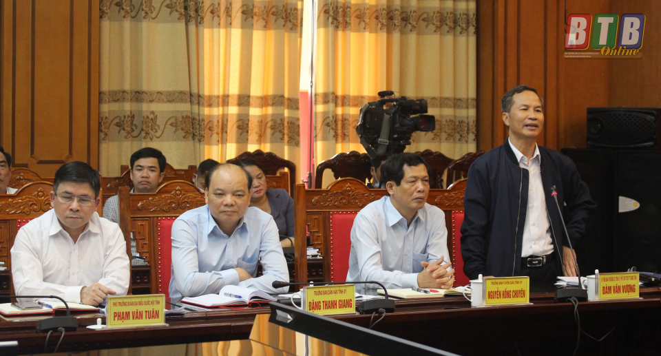 Đồng chí Đàm Văn Vượng, Ủy viên Ban Thường vụ Tỉnh ủy, Phó Chủ tịch thường trực HĐND tỉnh phát biểu tại cuộc họp.