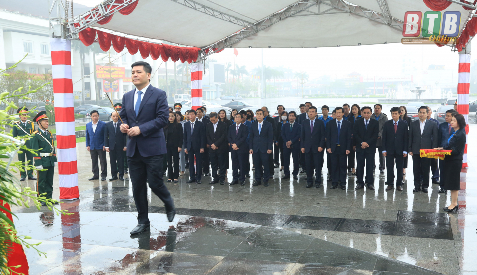 Tại Đền thờ Bác Hồ, các đồng chí lãnh đạo tỉnh và các đại biểu đã dâng hương bày tỏ lòng biết ơn vô hạn đối với công lao to lớn của Chủ tịch Hồ Chí Minh - vị lãnh tụ thiên tài của Đảng ta, nhân dân ta. Người đã cống hiến, hy sinh trọn đời cho sự nghiệp giải phóng dân tộc, đấu tranh vì hòa bình và hạnh phúc của dân tộc Việt Nam và nhân dân thế giới.
