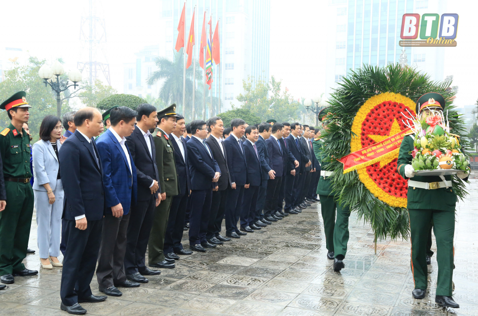Tại Đền thờ Liệt sĩ tỉnh, các đồng chí lãnh đạo tỉnh và các đại biểu đã đặt vòng hoa, dành một phút mặc niệm, tưởng nhớ những người con ưu tú của quê hương đã anh dũng chiến đấu và hy sinh vì sự nghiệp đấu tranh giải phóng dân tộc, vì nền độc lập, tự do của Tổ quốc, vì hạnh phúc của nhân dân. Vòng hoa của Tỉnh ủy, HĐND, UBND, Ủy ban MTTQ tỉnh mang dòng chữ “Đời đời ghi nhớ công ơn các anh hùng liệt sĩ”.