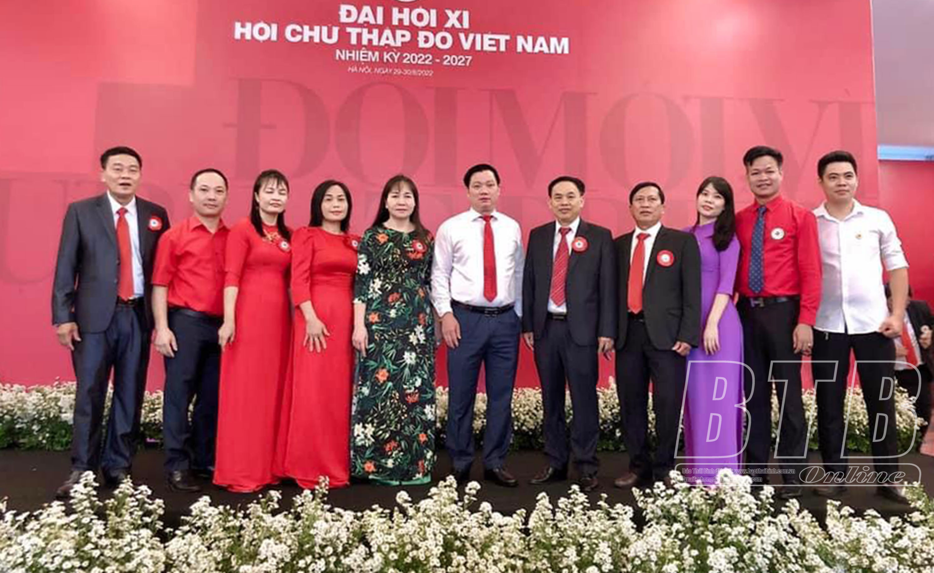 Đồng chí Nguyễn Khắc Thận, Phó Bí thư Tỉnh ủy, Chủ tịch UBND tỉnh, Chủ tịch danh dự Hội Chữ thập đỏ tỉnh cùng đoàn đại biểu tỉnh Thái Bình tại Đại hội.