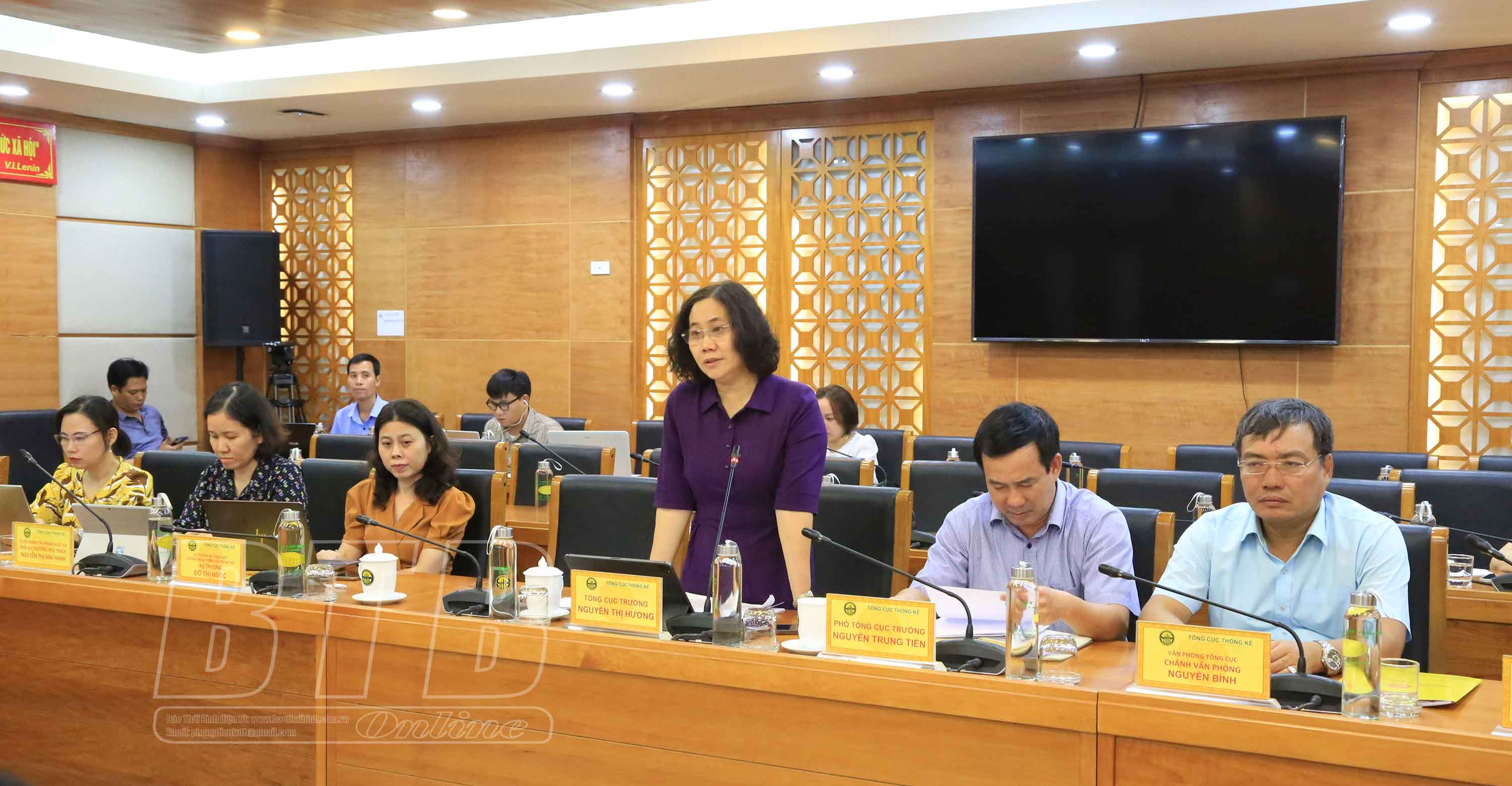 Đồng chí Nguyễn Thị Hương, Tổng cục trưởng Tổng cục Thống kê phát biểu tại buổi làm việc.