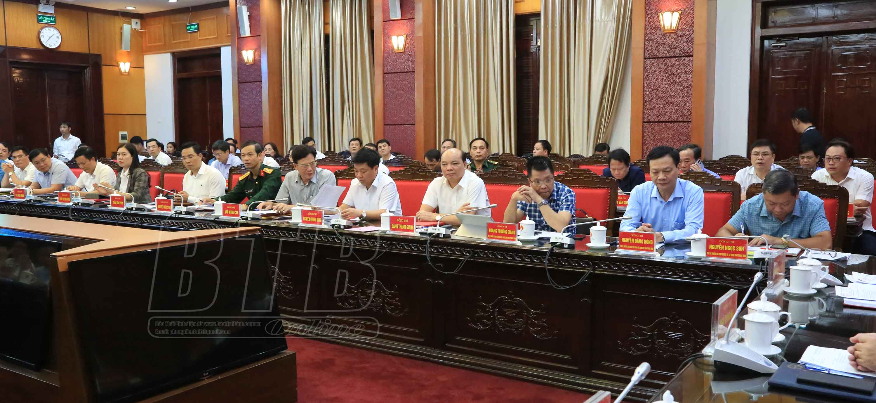 Các đồng chí: Ngô Đông Hải, Ủy viên Ban Chấp hành Trung ương Đảng, Bí thư Tỉnh ủy; Nguyễn Tiến Thành, Phó Bí thư thường trực Tỉnh ủy, Chủ tịch HĐND tỉnh; Nguyễn Khắc Thận, Phó Bí thư Tỉnh ủy, Chủ tịch UBND tỉnh chủ trì hội nghị.