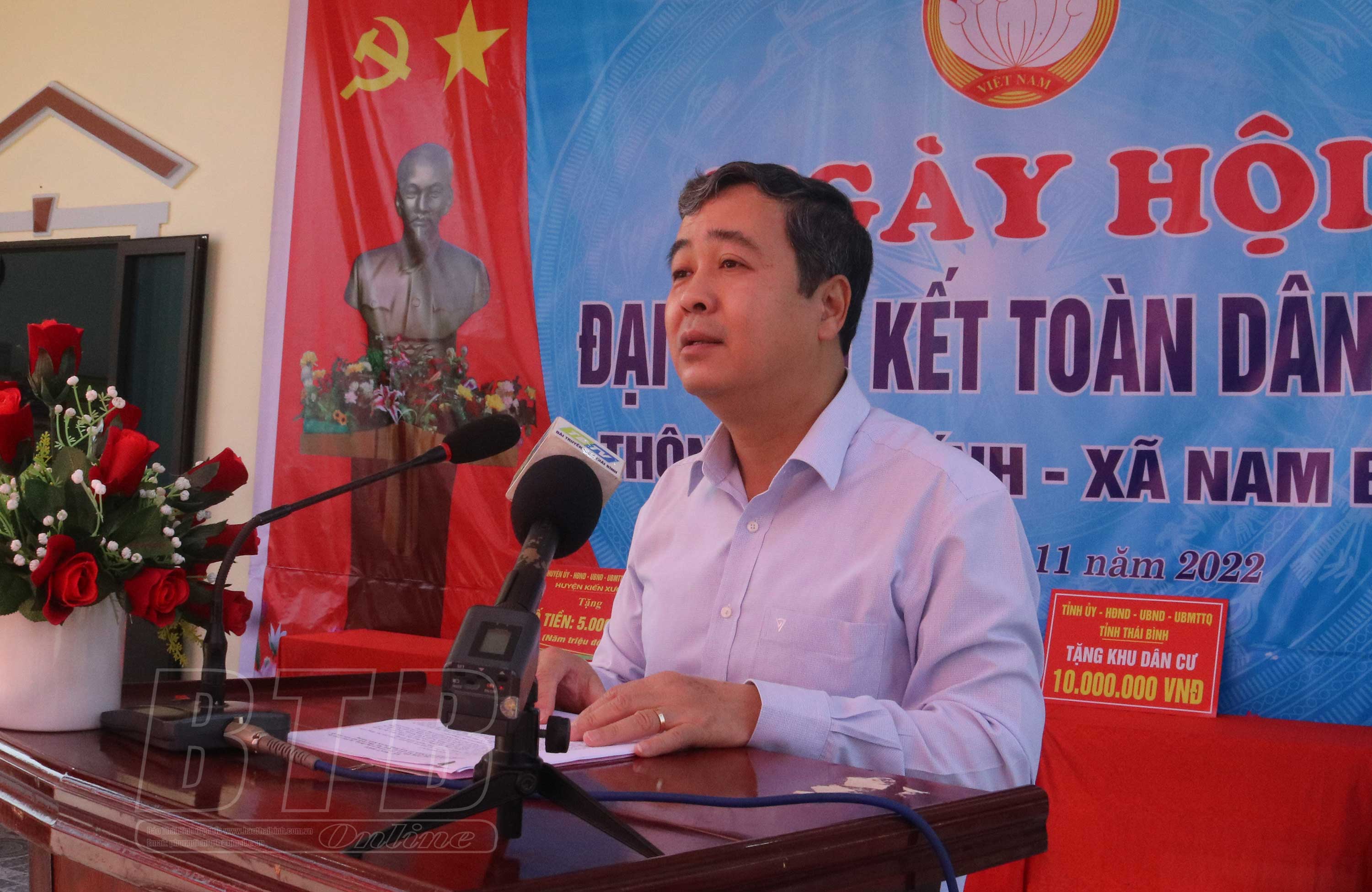 Sáng ngày 6/11, đồng chí Ngô Đông Hải, Ủy viên Ban Chấp hành Trung ương Đảng, Bí thư Tỉnh ủy dự ngày hội đại đoàn kết toàn dân tộc tại thôn Đức Chính, xã Nam Bình (Kiến Xương).